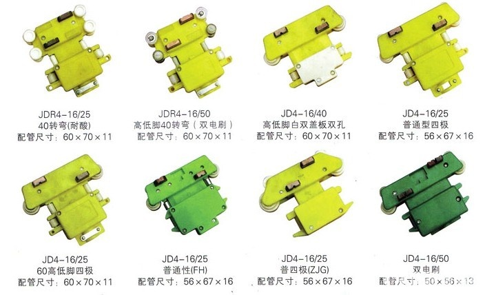 大三極、雙電刷、普通轉(zhuǎn)彎、轉(zhuǎn)彎、大頭雙電刷、高低腳轉(zhuǎn)彎、高低腳、多極多極集電器普通型四極、高低腳四極、普通型、普四極ZJG、小雙電刷、五極、四 極、雙蓋雙孔、六極轉(zhuǎn)彎、小七極管、大七極管、八極轉(zhuǎn)彎、十極管、十六極、防塵雙電刷、大四極、四線(xiàn)插座多極多極集電器。